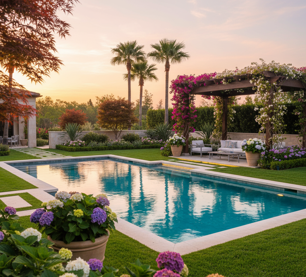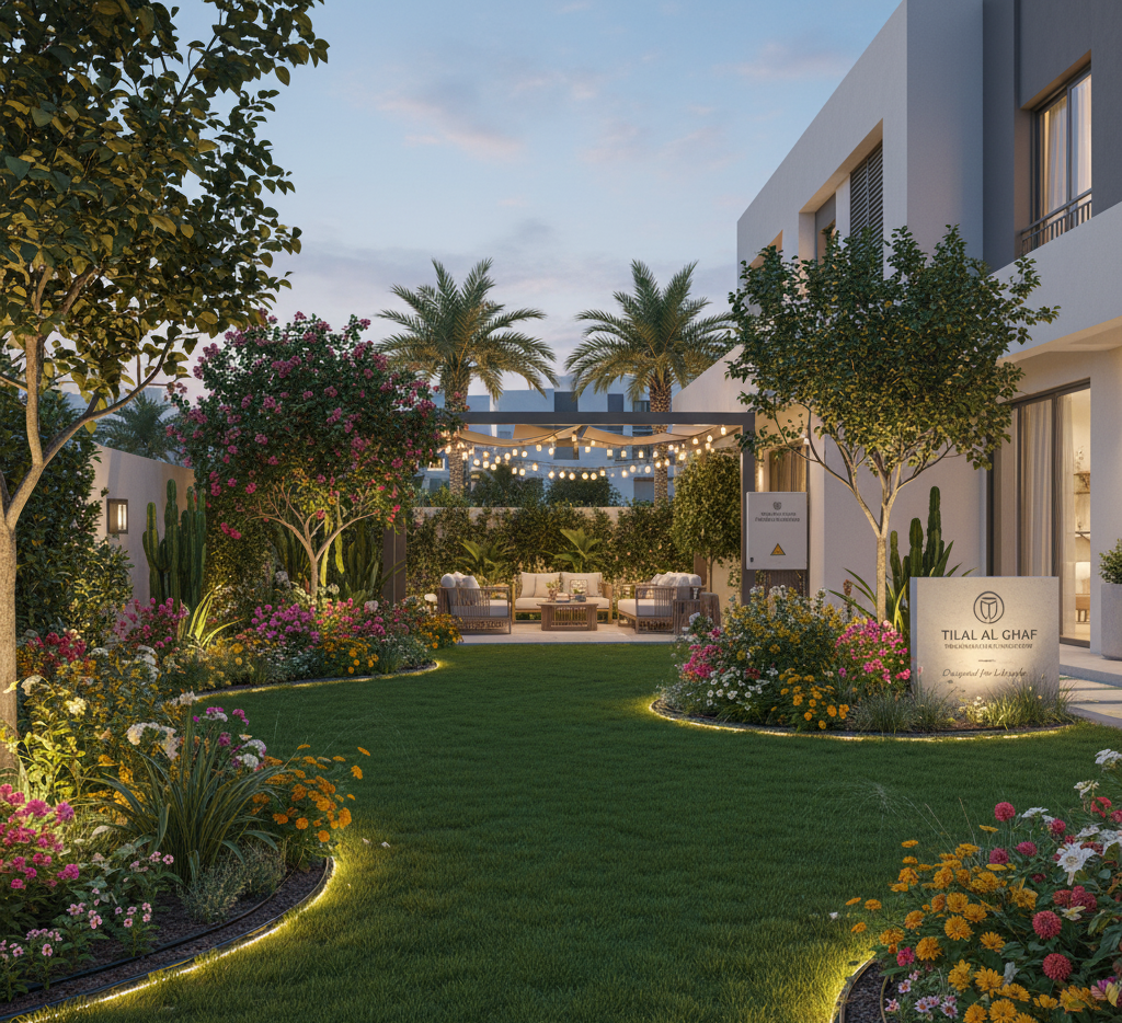 For this Tilal Al Ghaf villa, our designers created a sustainable family-friendly garden featuring vibrant plants, energy-efficient lighting, and a fully automated irrigation system. The result is a green, peaceful space that enhances both beauty and lifestyle.